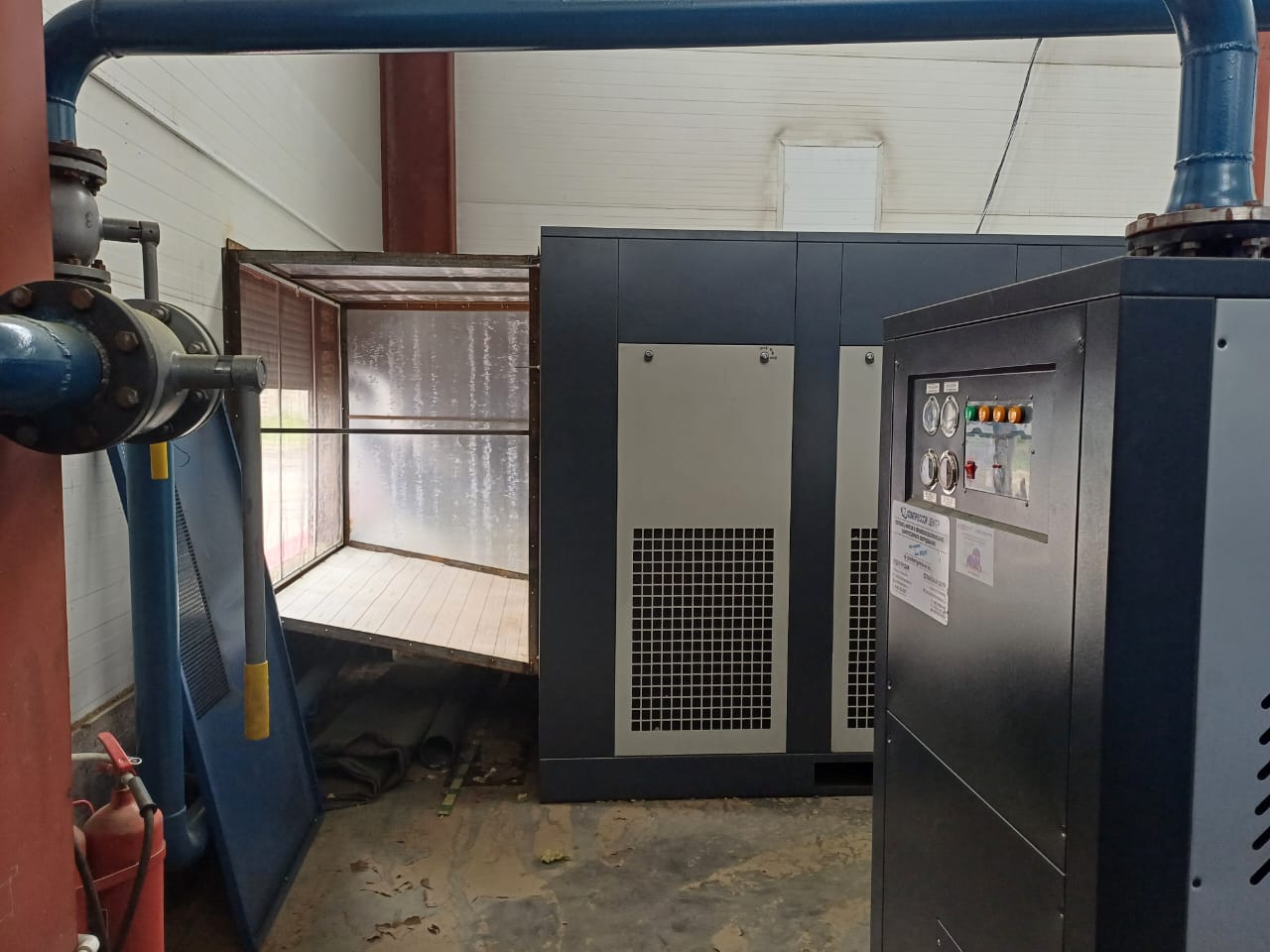 Воздуха нужно было много, закрыть потребность в сжатом воздухе всего предприятия сможет двухступенчатый винтовой компрессор "Enger" HBD-220DFE2. К нему в пневмолинию также был установлен рефрижераторный осушитель "Enger" RD-550A.